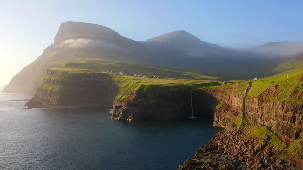 Im Dorf Gásadalur befindet sich der bekannteste Wasserfall der Färöer, der Múlafossur, der in den Atlantik führt. Inmitten der charakteristischen Grasdachhäuser liegt Gásadalsgardur, heute ein Gästehaus mit Café. Hier gibt es hausgemachte färingische Spezialitäten. Auf dem Weg von und nach Gásadalur passieren Sie das Dorf Sandavágur, in dem sich das gemütliche Cafe Fiskastykkið befindet. Hier serviert man sowohl Mittagessen als auch Kaffee und Kuchen.